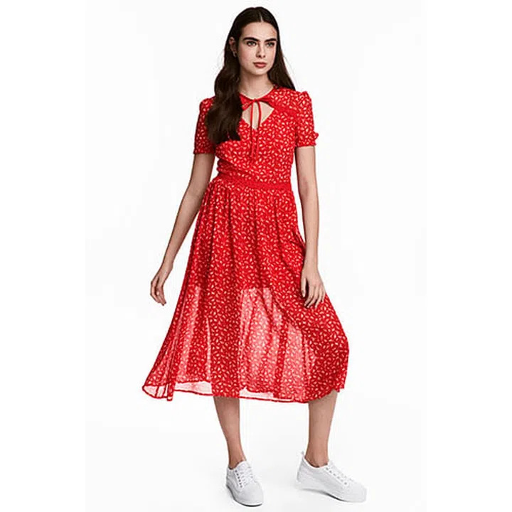 The combo of the sheer fabric and the cut-out around the neckline makes this a perfect dress to be worn on daytime dates.