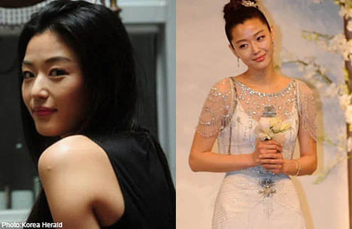 Note: Ji Hyun is wearing a Jenny Packham dress here.