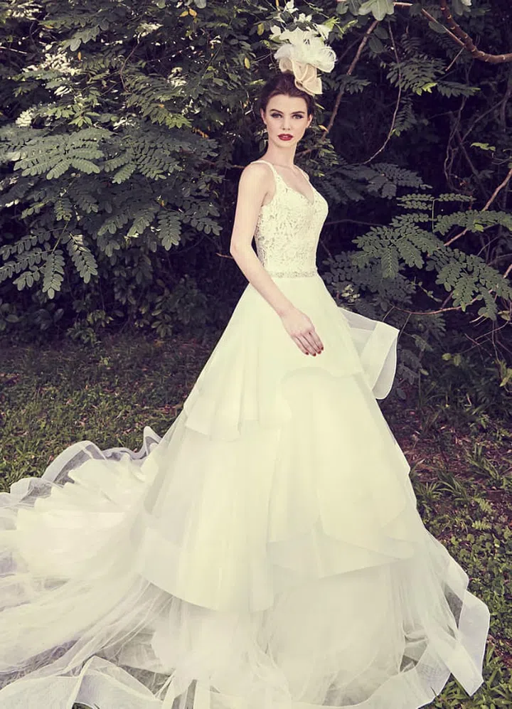 The quickest way to give the classic ballgown or A-line wedding dress a modern spin - lightweight layers, and a flirty bodice (like spaghetti straps, a sweetheart neckline or sheer panels).