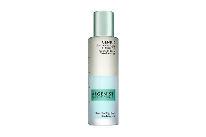 This bi-phase formula includes the effectiveness of peeling acids with the nourishing benefits of Microalgae Oil. The water phase is infused with Alguronic Acid and anti-ageing ingredients, such as Glycolic and Shikimic Acid to exfoliate and condition skin. The oil phase contains a high concentration of Microalgae Oil and powerful peeling and restorative ingredients such as salicylic acid and algae extracts to replenish and nourish skin. Together, they leave you with a luminous, clear, younger-looking complexion.
