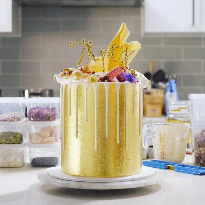 Update the regular white buttercream cake with a glamorous gold tier at the top or bottom.