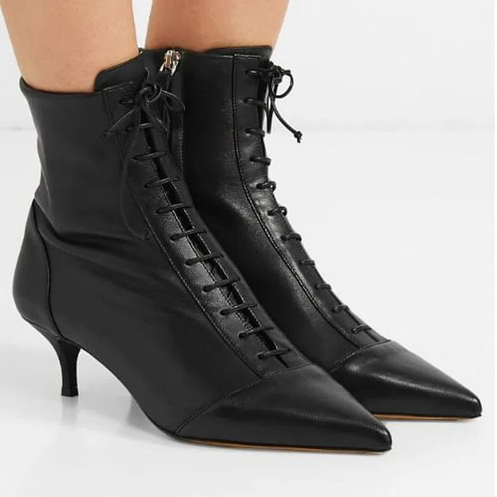 These kitten heeled pointed ankle boots have something rather ‘witchy’ about them, and we love it. With a side zip and front lace detail, they fit very snug against your ankles and ooze style points. If you’re daring, rock these with cropped black trousers or culottes to give them the airtime they need and deserve.