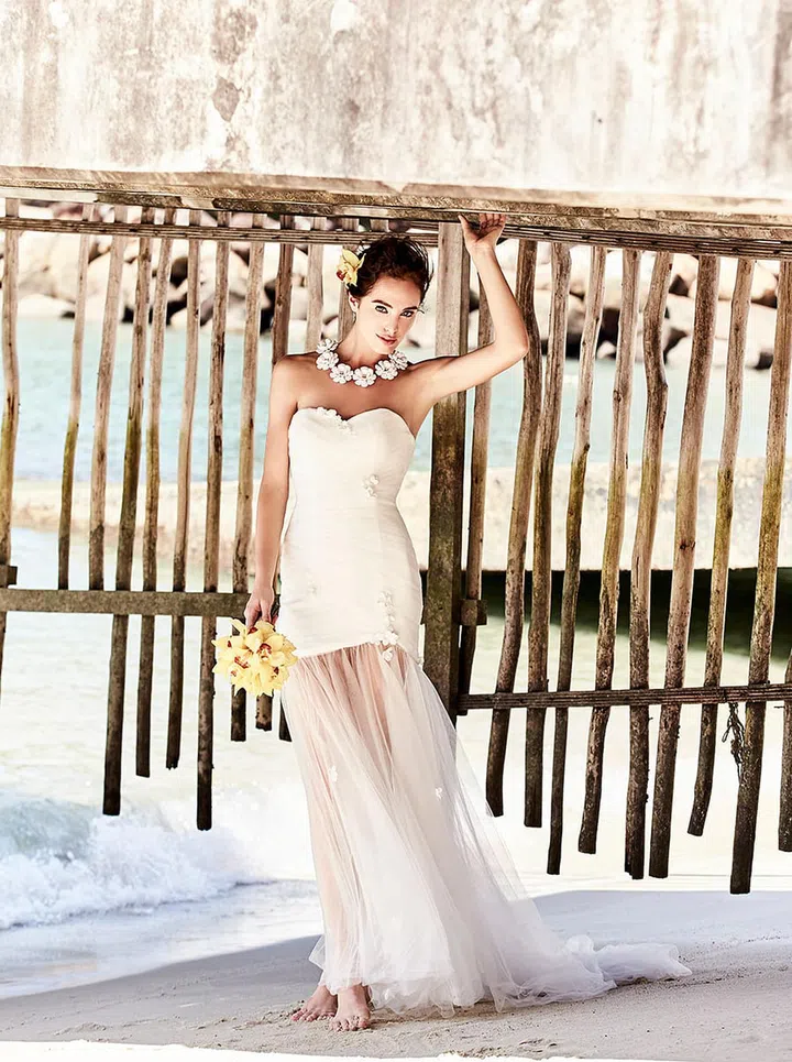From Rico-A-Mona to Digio Bridal, these 10 gowns are perfectly suited for a tropical beachside wedding.