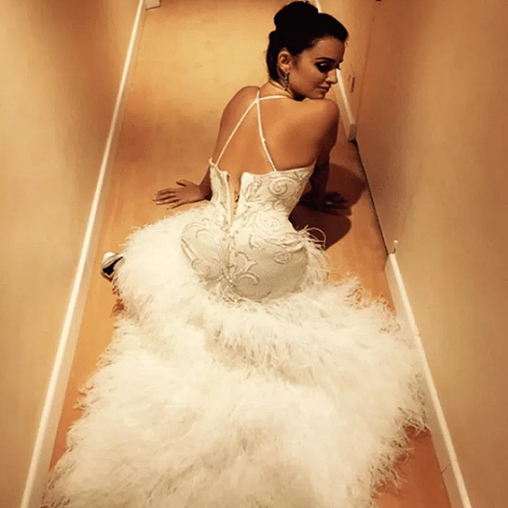 Penelope Cruz left us floored with her Versace gown. The feathered skirt adds a je ne sais quos to the barocco style pattern embellishment.