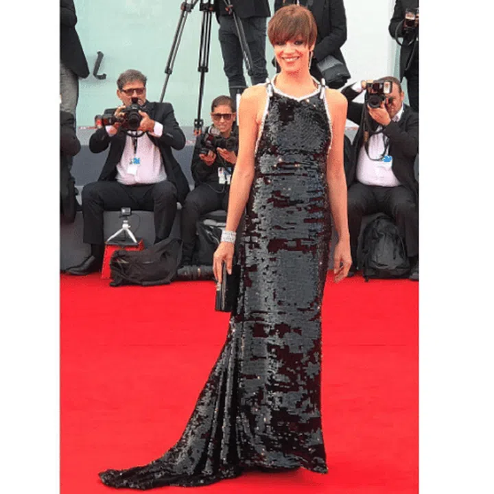 Micaela Ramazzotti took our breath away with her elegant Prada black chiffon gown embellished with Swarovski crystals. Her signature boyish cut and smokey eye makeup adds an androgynous twist to her otherwise dainty black number.