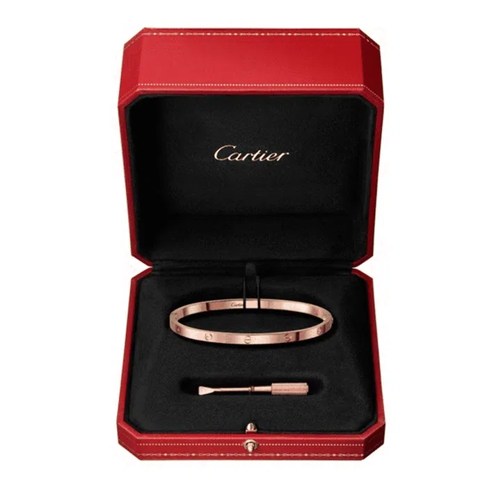 Cartier love bracelet in pink gold, $5,600 from Cartier .