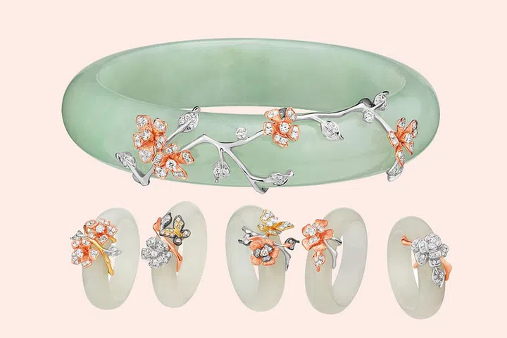 Jade's got a rep for being old-fashioned but these exquisite pieces from Lee Hwa Jewellery are far from it. In green or white, these modern takes on the traditional jade bangle and rings are dressed with exquisite rose gold and diamond floral motifs.