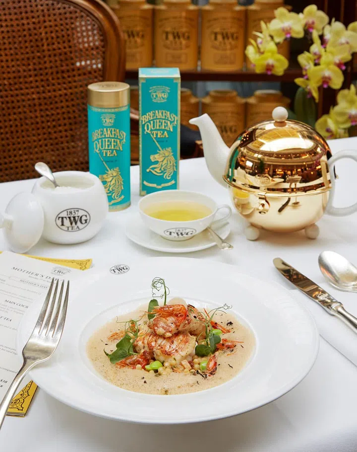 For the special Queens of our hearts, TWG has just got the thing. Its Mother's Day Set menu comprises a main, tea and dessert at $38. For the main course: Succulently pan-seared slipper lobster served with a pearl couscous ragout with Wagyu chorizo and king oyster mushrooms, accompanied by a langoustine emulsion and sprinkled with crushed African Ball Tea leaves and fried ebi - boy, that's a (delicious) mouthful.