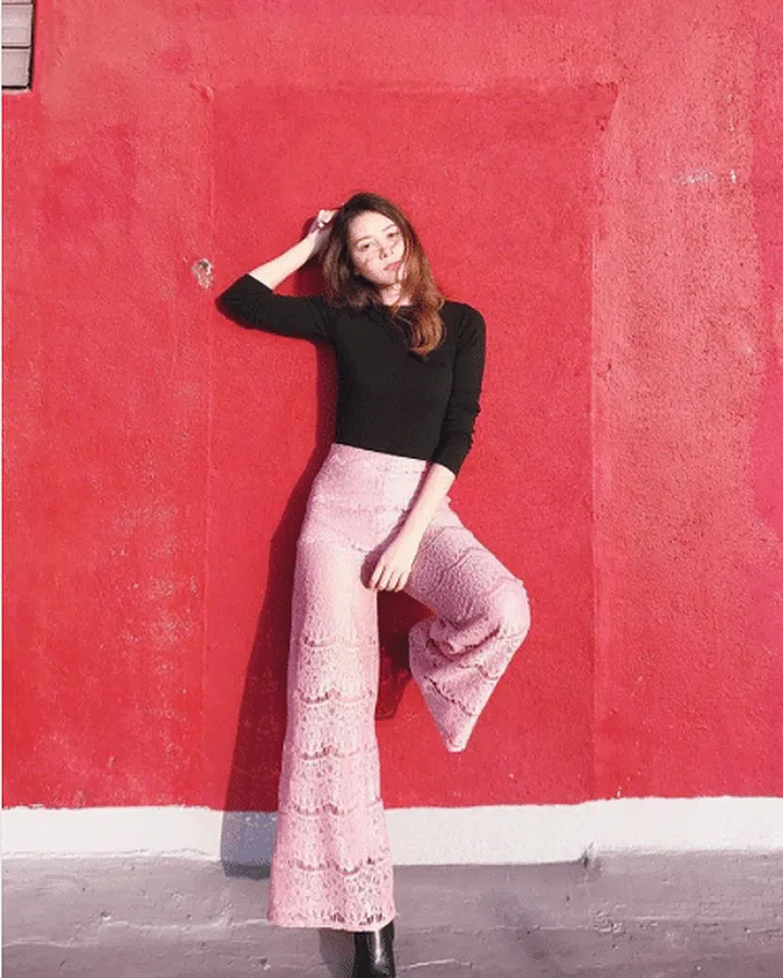 Incorporating lace pieces to your 9-to-5 outfit can be rather tricky. To make your lace piece work for the boardroom (not bedroom), opt for a lace-detailed top or bottom with a muted colour palette like this pale pink lace trousers seen on local actress He Ying Ying.