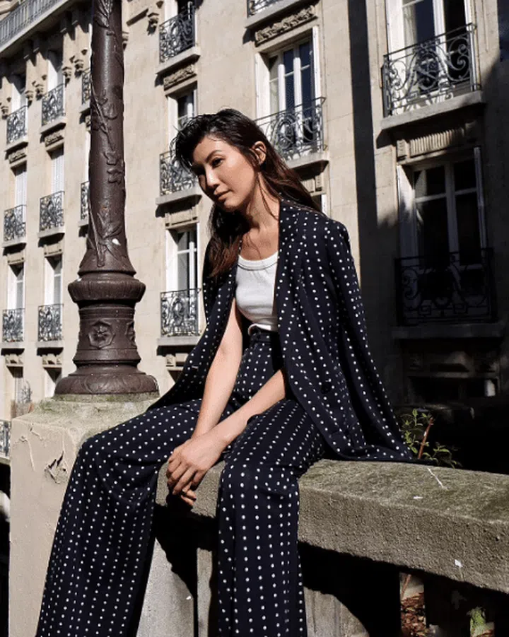 Rather than opting for your plaid and pinstripe options, go bold with a polka dotted suit like this one from Max Mara seen on local actress Jeanette Aw. If you want to elevate your outfit to new heights, give your feet a break from high heels and team the ensemble with a pair of white kicks.