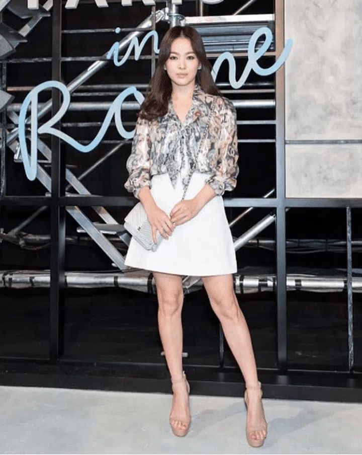 While the blouse and skirt combo seen on the “Descendants of the Sun” actress, Song Hye Kyo, is nothing new, the pussybow detail of the top and quilted crossbody bag make this standard feel fresh.