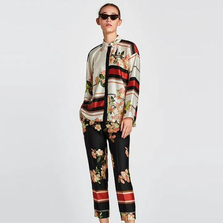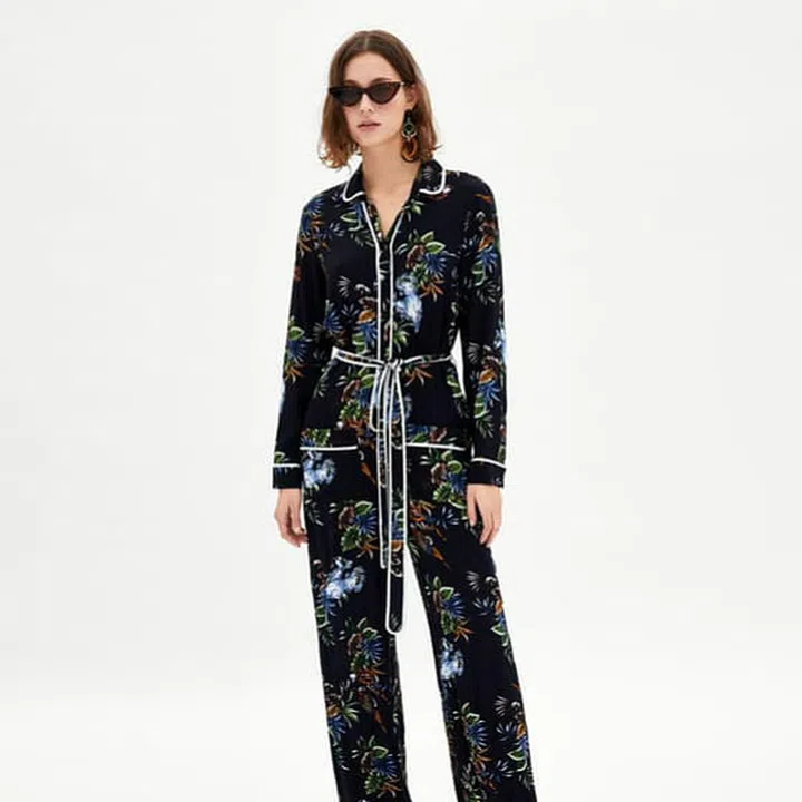 Pyjamas were a big trend a few years back but we're considering this pyjamas 2.0 - a flattering fit (the sash allows you to loosen its silhouette post-brunch), the standard tropical floral print and contrasting piping.