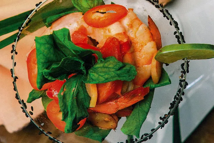 4. Pan-fry the shrimp for 2 to 4 minutes on medium-high heat, until pink. (more details – how to fry, for how long etc) Toss with the tomatoes, buckwheat and dressing. Serve warm.
