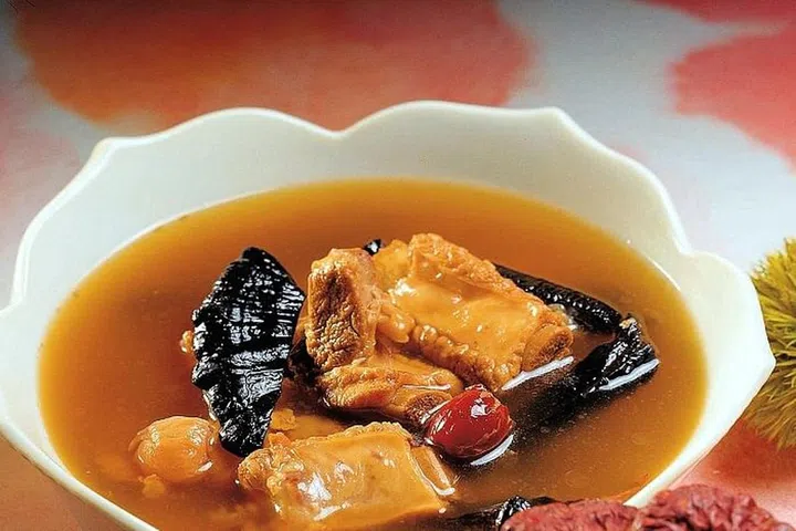 4. Add the bak foong pills, and red dates, and simmer over slow heat for three hours.