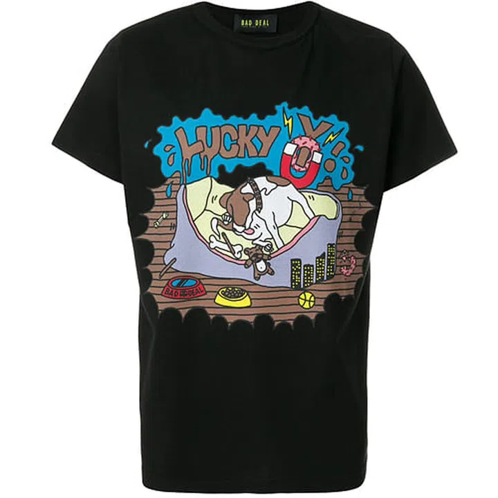 Artsy streetwear brand Bad Deal has a t-shirt with a bold illustrated print splashed across of it. Featuring the slogan ‘Lucky You’ in an adorable hand-drawn font, the black cotton shirt shines a spotlight on the environment surrounding a house beagle. Wear this as a boyfriend tee knotted at the side, or tucked into an A-line skirt.