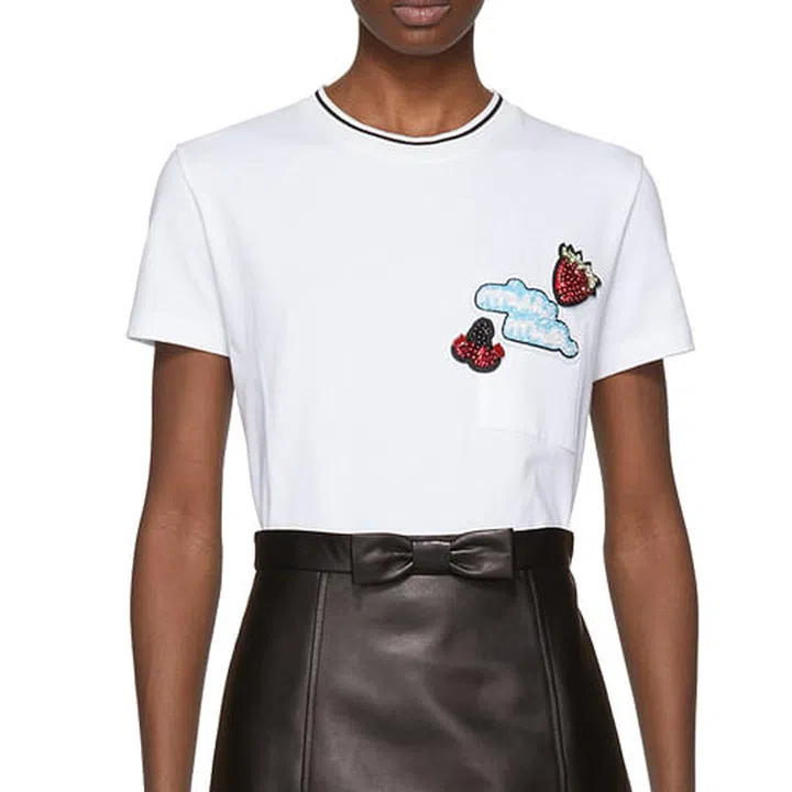 Miu Miu white sequined fruit patch t-shirt, US$745