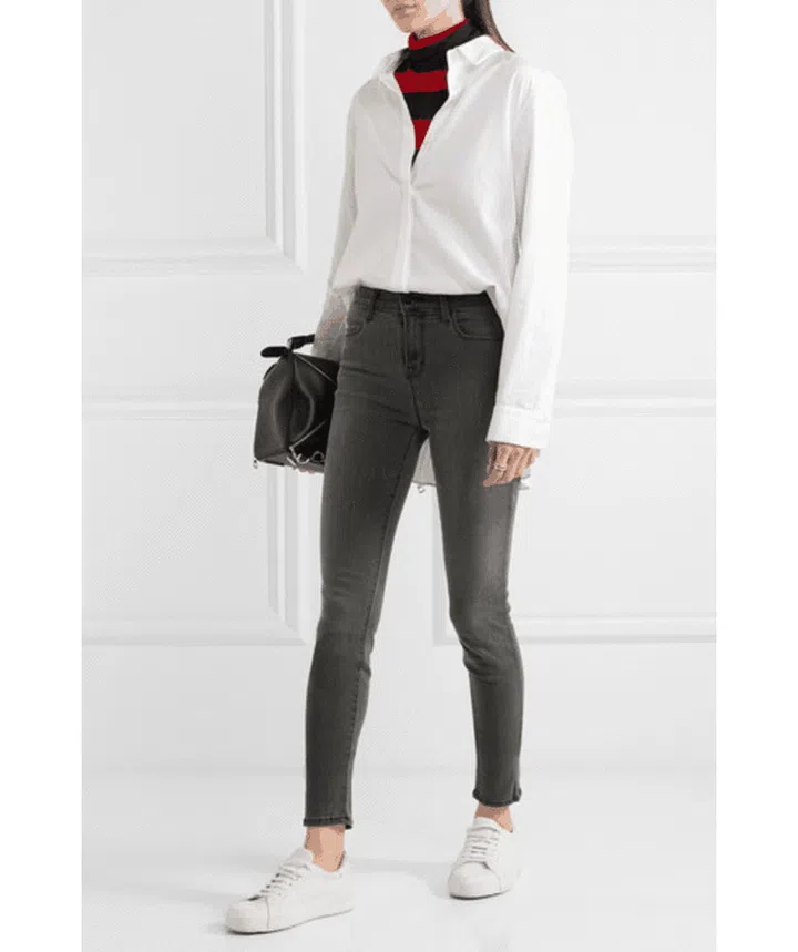 Add some variation to your collection of jeans to include a shade (or fifty) of grey! Grey pairs as well as, or better than, most shades of blue, and is an unusual and understated change to your typical jeans-and-tee get up. Out with the overrated black and white pairing, pair your usual white top with dark grey jeans like Narelle.