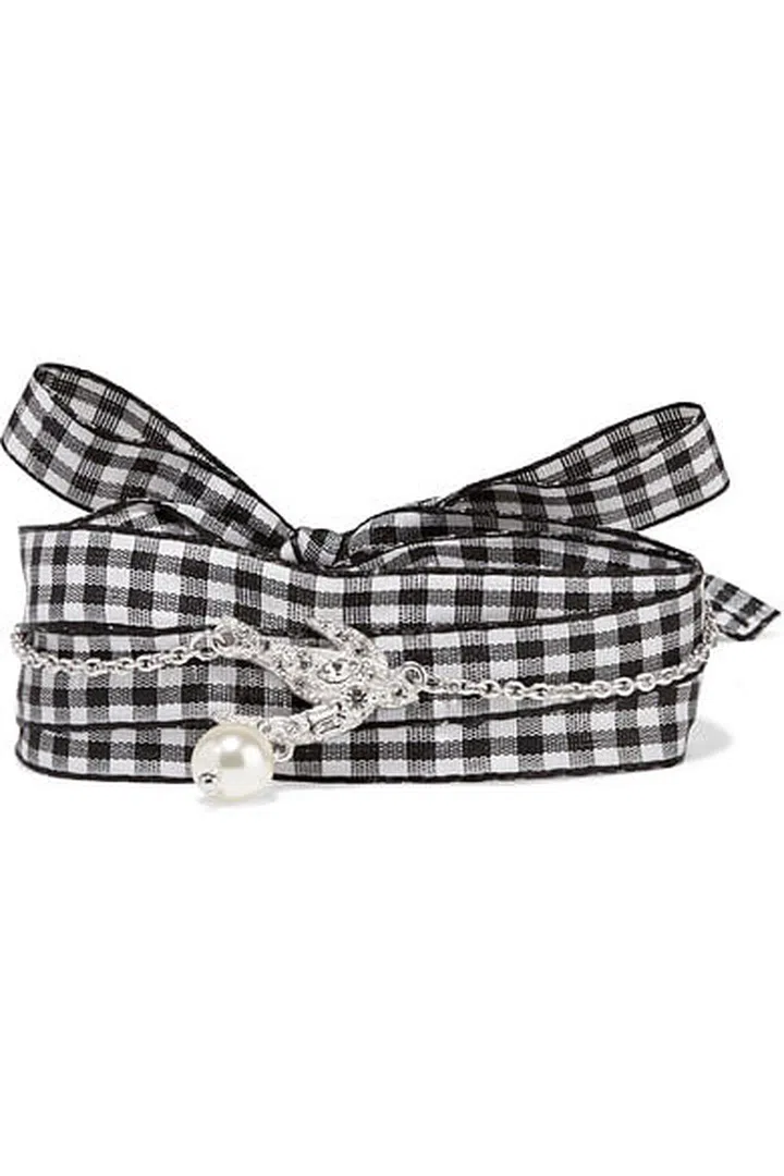 Miu Miu ilver faux pearl and Gingham Bracelet, $363 from Net-a-porter