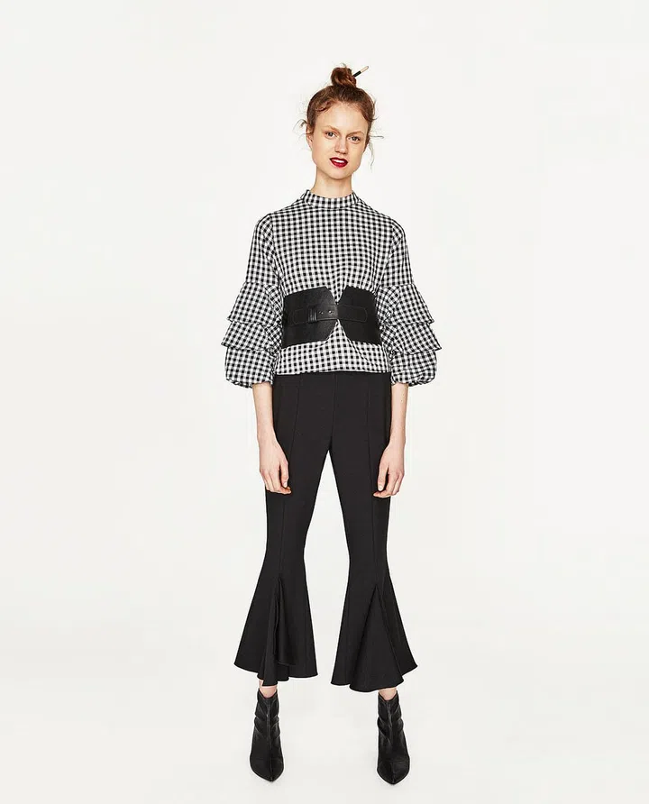 This top swoops in with both gingham and ruffled sleeves - allowing the wearer to be all ‘look at me rocking trends like nobody’s business’.