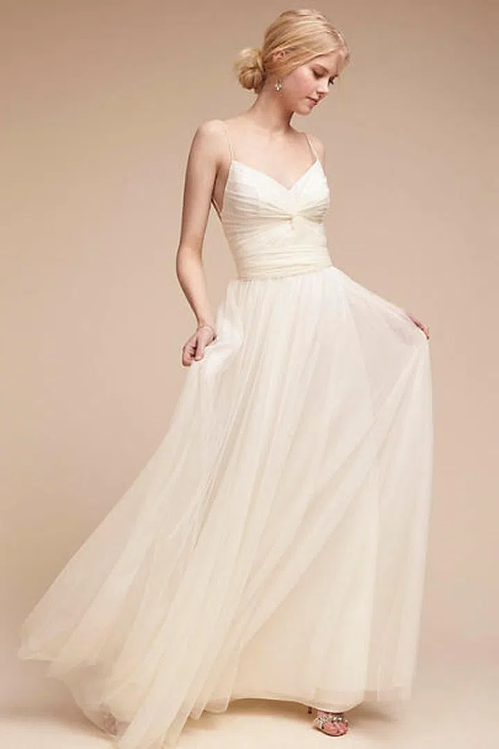 Tulle gowns don't have to be big and poofy. This one from BHLDN (it's pronounced as "beholden") is sleek whilst still retaining that fairytale aspect.