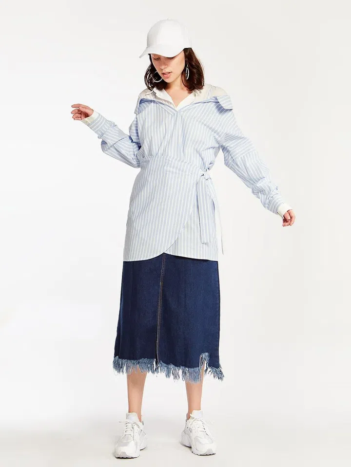 This shirt dress can not only be worn as a shirt (duh), but also a strapless dress! All you gotta do is tie the sleeves around your torso. Style tip: if you decide to wear it as a shirt, throw on a long denim skirt and layer it on top of a white shirt for coverage.