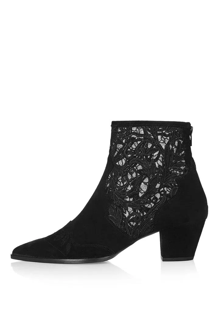 Want to wear ankle boots to a formal event? Try this pair from Topshop with delicate yet edgy lace details, making it suitable to dress up or down in.