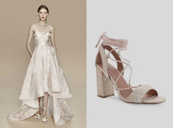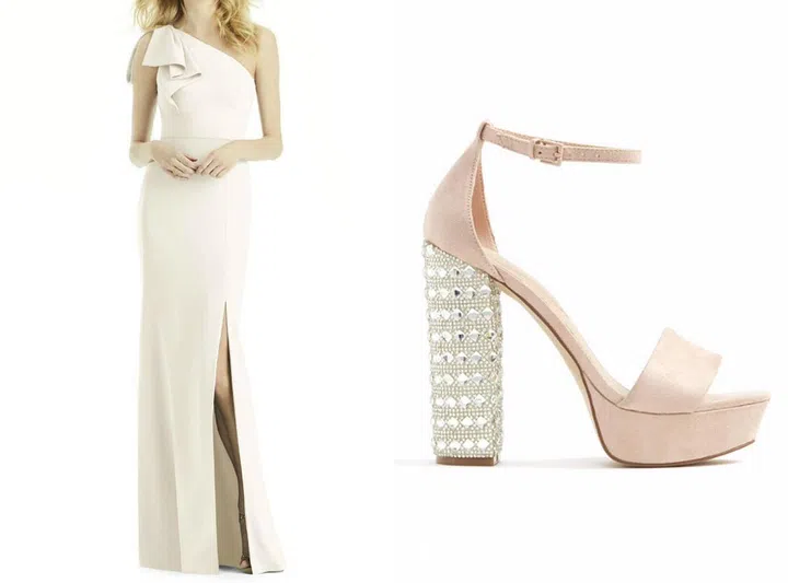 After Six polyester gown, SGD 339.41–SGD 359.54, from www.nordstrom.com. Shop it here. Nesida pink platform sandals, now USD 90, from www.aldoshoes.com. Shop it here.
