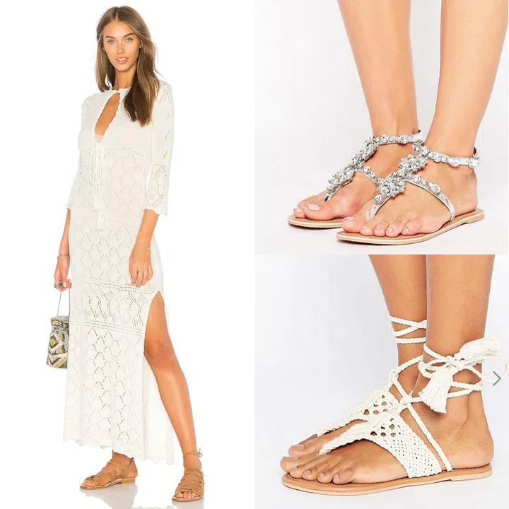 For sandy seaside nuptials, swop the heels for sandals if you don't want your precious new shoes sinking into the sand. Opt for comfy sandals instead, with a little sparkle to turn up the glamour.