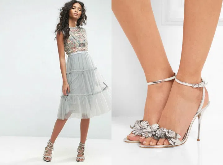 Needle & Thread embellished tulle dress, SGD 398.68, from www.asos.com. Shop it here. Sophia Webster lilico appliquéd metallic leather sandals, now USD 547.84, from www.net-a-porter.com. Shop it here.