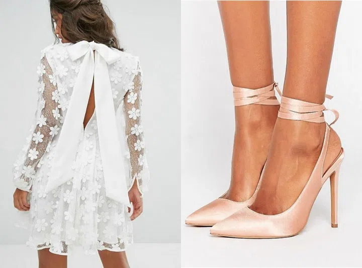 For Love & Lemons long-sleeved dress, SGD 378.68, from www.revolve.com. Shop it here. Asos Papaya bridal embellished heels, now SGD 140.08, from www.asos.com. Shop it here.