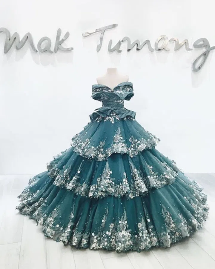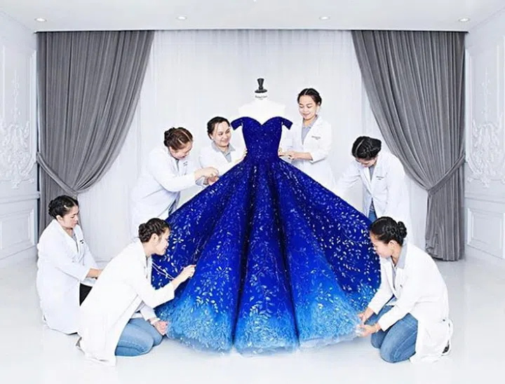 Filipino designer Michael Cinco created this magnificent cobalt number for Isabelle Duterte, grand daughter of Philipines President Rodrigo Duterte, for her 18th birthday. The dazzling piece is fully studded with degrade Swarovski crystals.