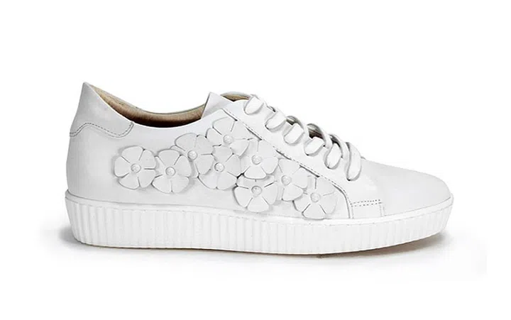 3D floral appliques don't just look great on your wedding gown, they elevate these leather sneakers, too.