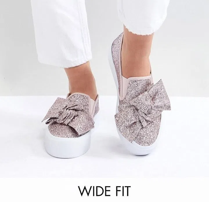 You don't have to stick to white. This peach-pink pair with 3-D rose gold embellishments give your white bridal ensemble an unexpected pop of fresh colour.