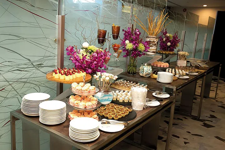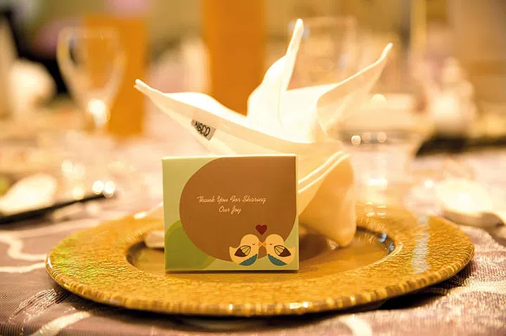 Guests had a choice of favours: a luggage tag or a Swarovski pen. The former represented Celeste's job as a flight attendant.