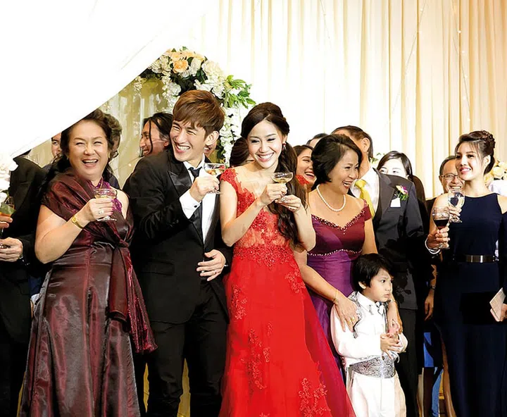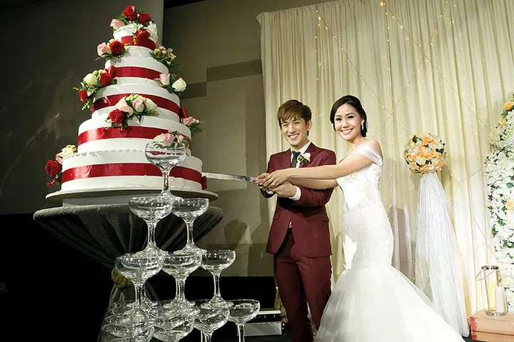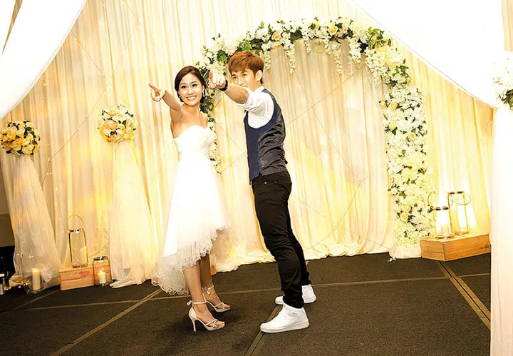 Singer/performer/vocal coach Benjamin Eio, and Singapore Airlines cabin crew member, Celeste Xu, had a concert-themed wedding with lots of singing and dancing. P.S. Former Singapore Idol finalist and actor Nat Ho was best man!
