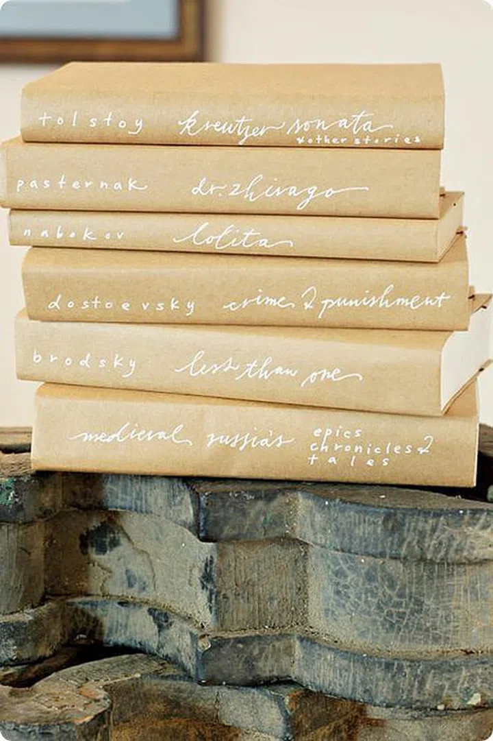 If you're having a literary-themed wedding, or you've got a stack of secondhand books you think your guests will be able to appreciate, invite them to take one each after the party, to savour!