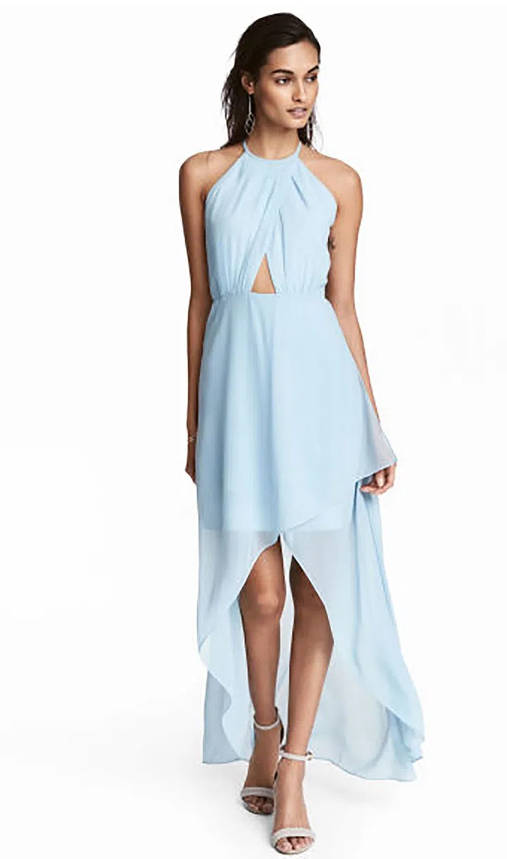 The light blue shade, sexy cut-out detailing and airy hemline will keep you lusting for this dress.