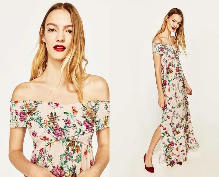 Long floral print dress, $59.90, from Zara