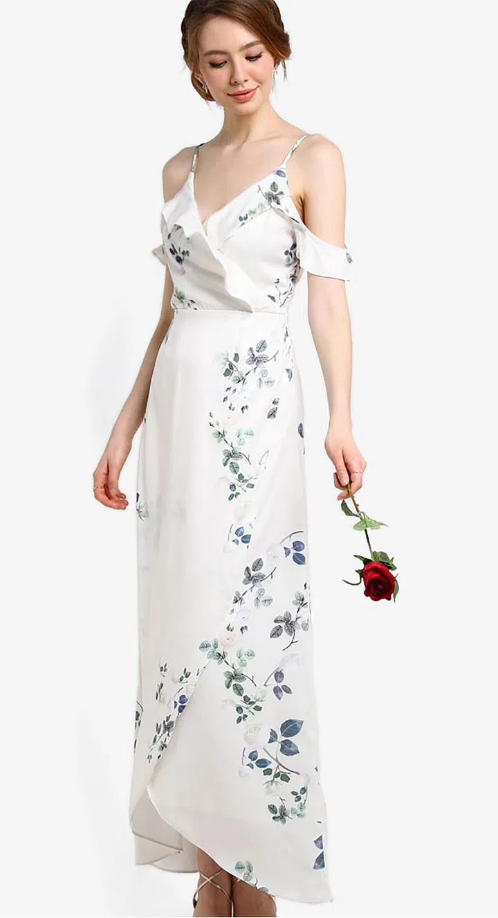 Printed cold shoulder maxi dress, $79.90, from Zalora