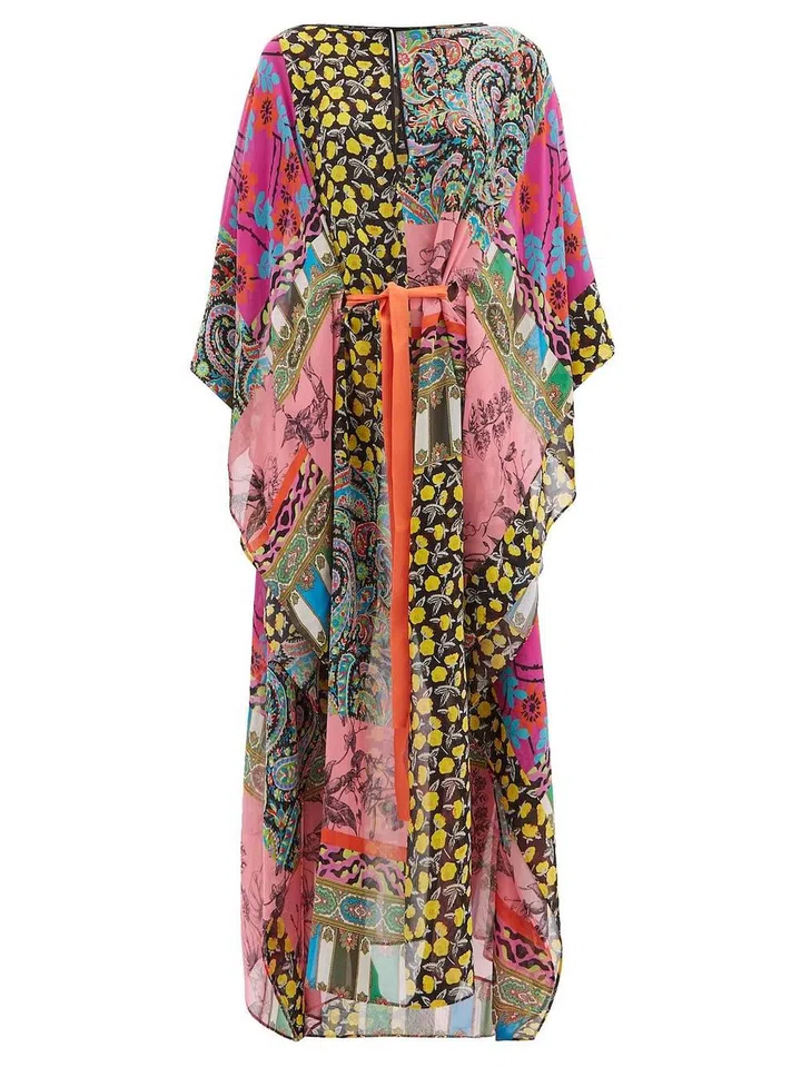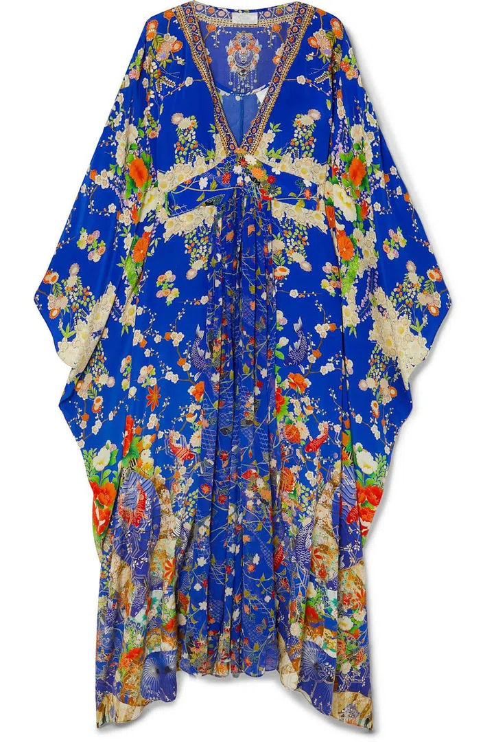 Italian family-owned fashion label Etro has earned a reputation for bold and vibrant colours, especially its paisley pattern. This floaty and colourful kaftan is a great example of the brand’s bohemian emphasis. Use the waist-tie to cinch your waist and finish with a pair of black strappy heels.