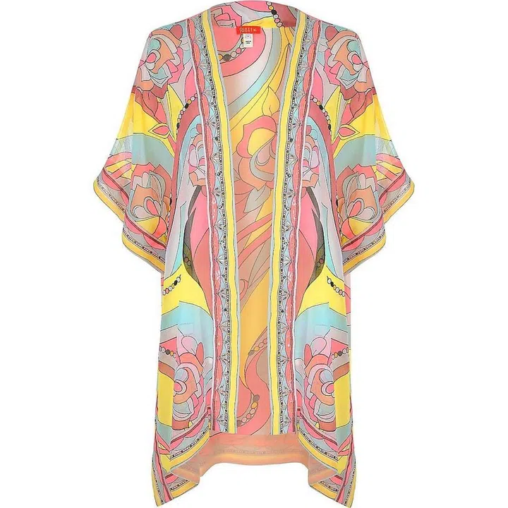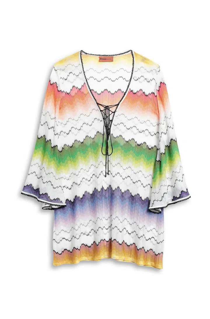 The zigzag weave pattern is emblematic of the Missoni house and we love how different colour gradients are incorporated to this white kaftan. Equally attractive are the laces at the front and its batwing sleeves. Use it as a quick coverup when you’re heading for lunch at your beach resort.