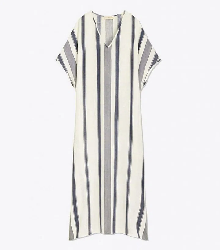 A kaftan’s oversized cut might be overwhelming for some, especially if you’re of a smaller stature. This Tory Burch design though, mitigates this problem with vertical stripes that help elongate the body, which means small frame ladies get to enjoy the casual style of the kaftan and still look snatch.