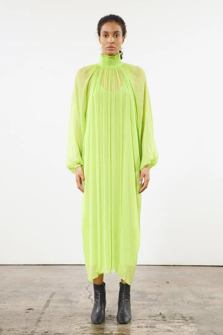 Instead of your usual monochromatic go-to LBD, opt for this fun-coloured lime green sheer dress for the party season. It is edgy, cool and lends a quirky approach to any look you are going for.