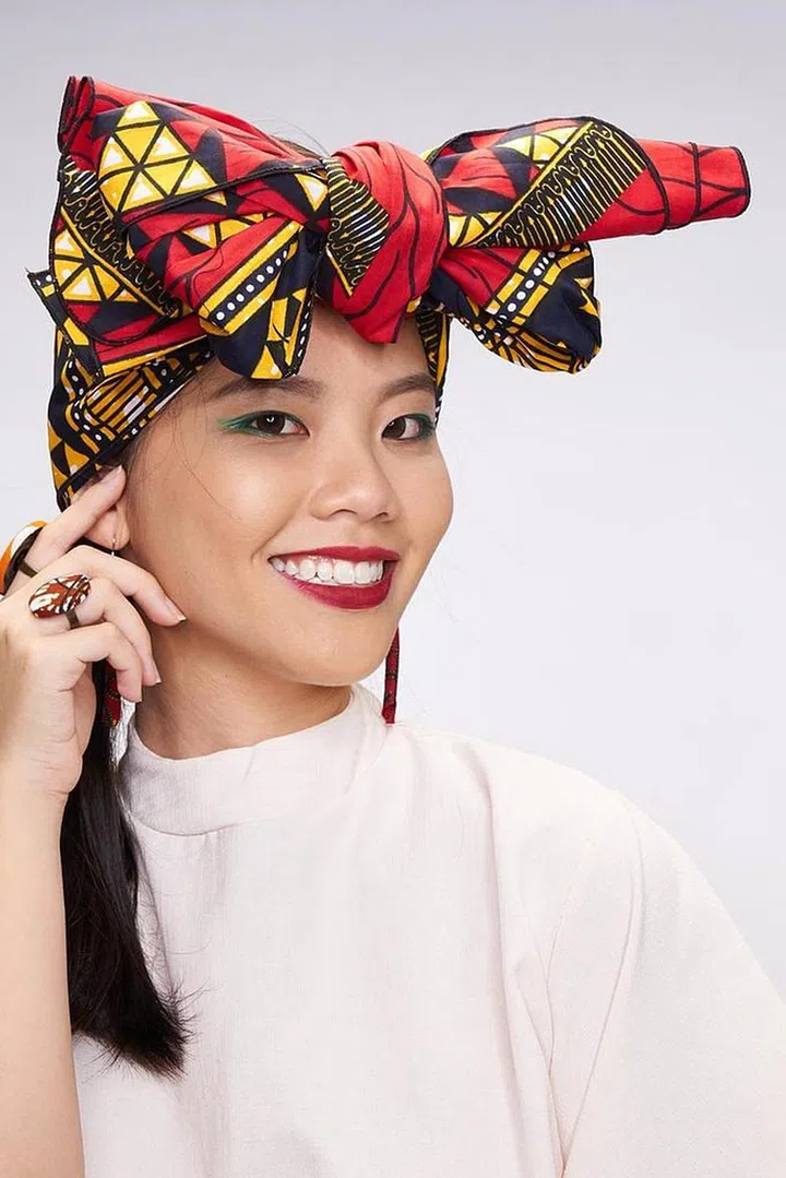 Besides its quirky apparels and kimonos, the brand is also known for its headwraps. This bright red one features an intricate design and can be worn in many different ways (this uber cute bow is just one way to do it!).