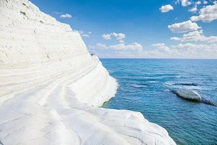 Cutting into the clear turquoise water off Sicily's southern coast is a massive white marlstone boulder, smoothed by years of wind erosion. Its name, which translates to Turkish Steps, has violent origins, in which Arab pirates - referred to as "Turks" - once anchored their boats in the coast during their plundering days. These days, the boulder is frequently used a favourite sunbathing spot and a diving board for thrill seekers.