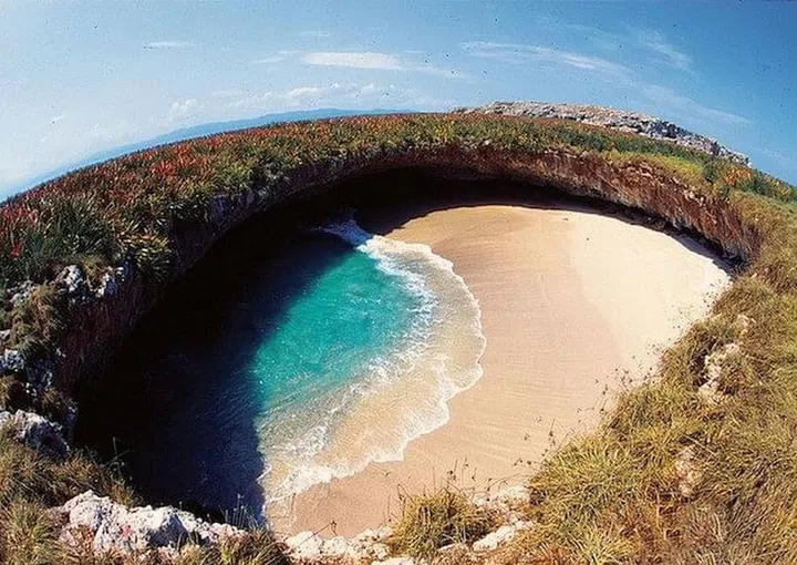True to its name, this beach lies out of sight, just beneath a large hole in the ground. Beachgoers can only access the beach by swimming through a cave when sea and weather conditions are optimal. According to Vallarta Adventures, this beach was formed by a collapse of the volcanic rock that makes up the island.