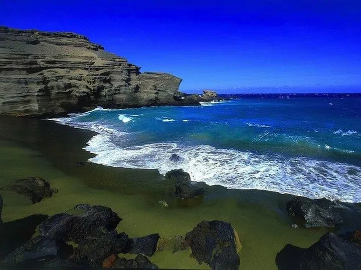 Thanks to the mineral olivine, which comes from the nearby cinder cone, this peculiar beach sparkles a brilliant green. It's only one of the four beaches in the world with bright green sand, the others being Talofofo Beach, Guam, Punta Cormorant on Floreana Island in the Galapagos Islands, and Hornindalsvatnet, Norway.