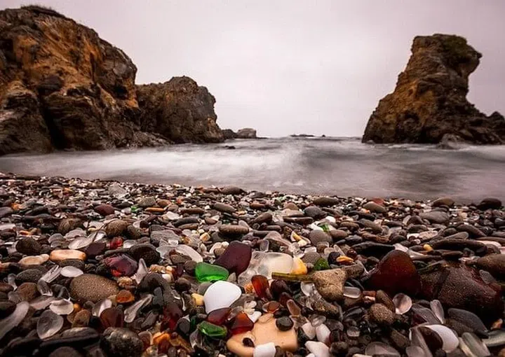 California Glass beaches are the perfect examples of nature's reclamation efforts. These two locations were previously used as industrial dump sites, but after a massive clean-up and years of erosion, discarded glass pieces were smoothened over to produce a glossy exterior, turning them into sea glass.