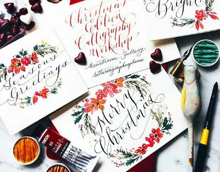 Learn the basics of modern calligraphy in this workshop. You will take home the necessary tools to start your lettering journey such as ink and nib holder as well as holiday-themed worksheets and references to create gorgeous Christmas cards that are bound to impress.