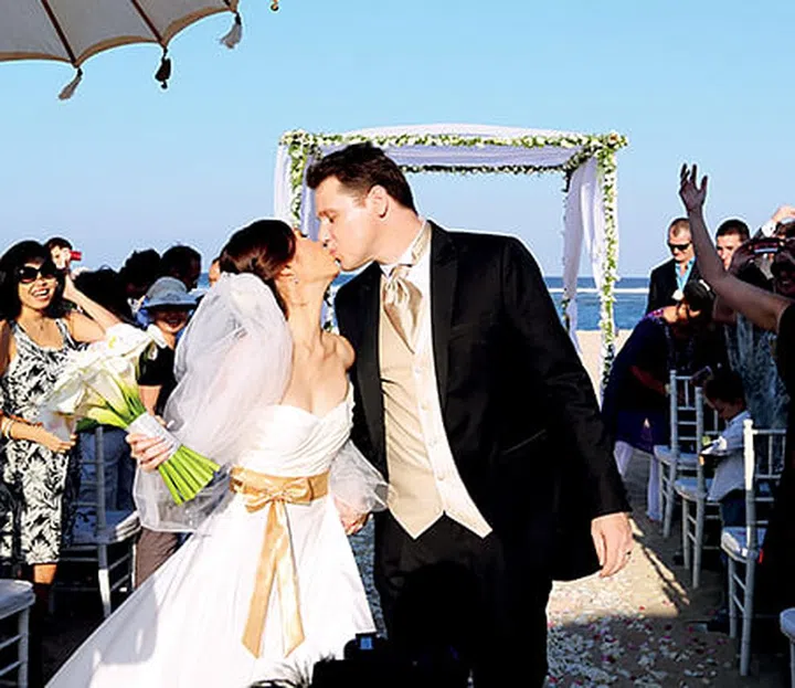 There were rows and rows of lush, white blooms at Liza and Andy's lavish Indonesian ceremony, including this grand arch at the reception. Photo: Her World Brides June 2010